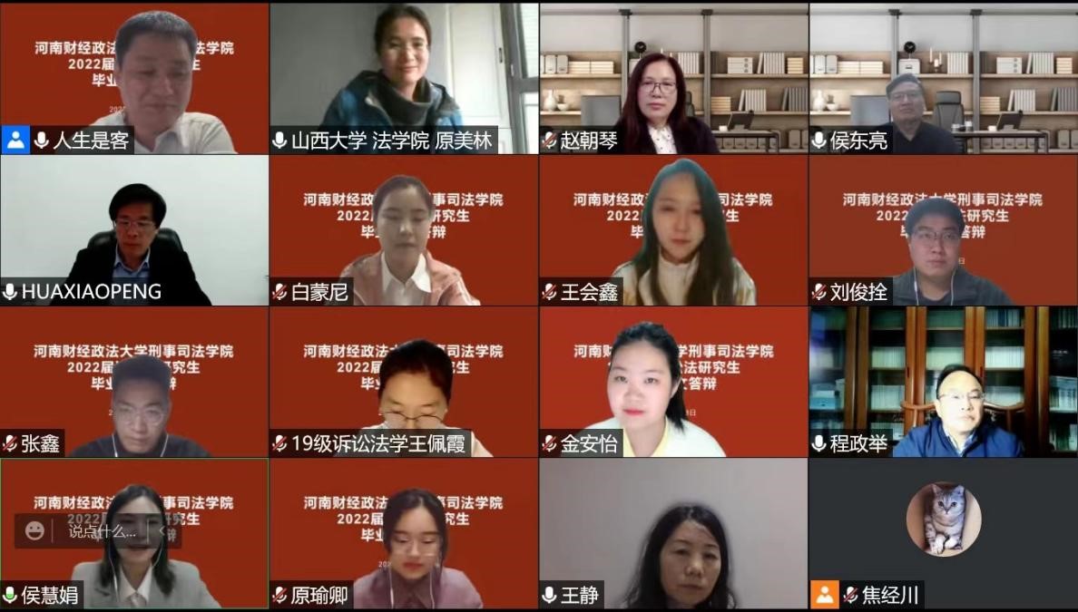 2022年5月8日,beat3652022届诉讼法学硕士研究生学位论文答辩会顺利举行。根据疫情防控规定,本次答辩全程线上进行。本届诉讼法专业毕业研究生共8位,分别是白蒙尼、侯慧娟、王佩霞、金安怡、原瑜卿、王会鑫、张鑫、刘俊栓。参加答辩的8位同学前期已经顺利完成了论文的开题、写作、预答辩、学术不端检测、匿名评审等各项程序。本次答辩会邀请山西大学教授、博士生导师原美林担任答辩委员会主席。beat365诉讼法导师组华小鹏教授、姜保忠教授、赵朝琴教授、程政举教授、侯东亮副教授、王合静副教授任答辩委员。beat365全体诉讼法专业硕士研究生在线观摩学习。
