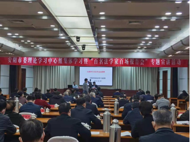 按照河南省法学会要求,为深入学习习近平新时代中国特色社会主义思想特别是习近平法治思想,2021年11月20日上午,“百名法学家百场报告会”法治宣讲活动在安阳市举办“习近平法治思想”专题讲座安阳专场,报告在安阳市行政办公大楼三楼电视电话会议室举行。