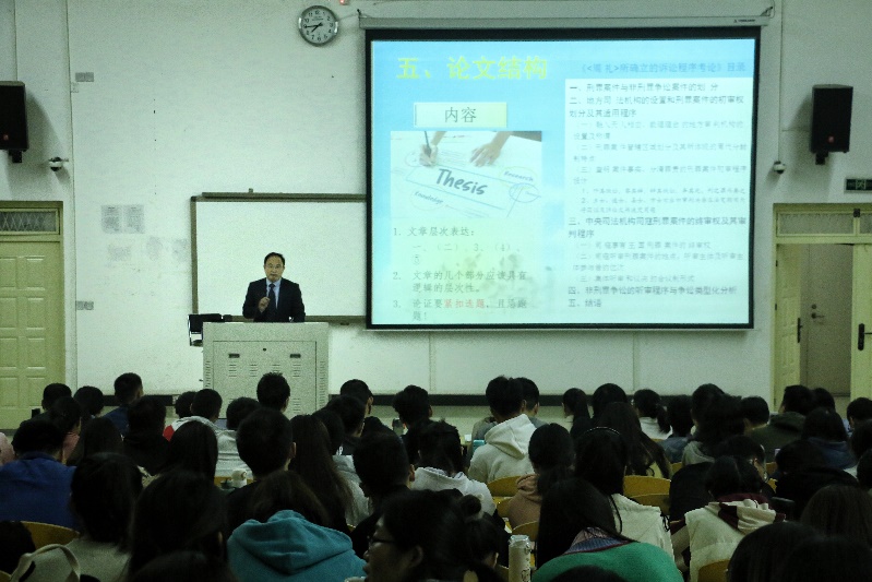 11月12日晚,beat365于建树楼B101教室举办“法学学术论文写作”专题讲座。此次讲座由beat365院长程政举教授主讲,我校beat365亚洲体育在线官网、法学院、民商经济法学院的本科生和研究生共计200余人聆听此次讲座。