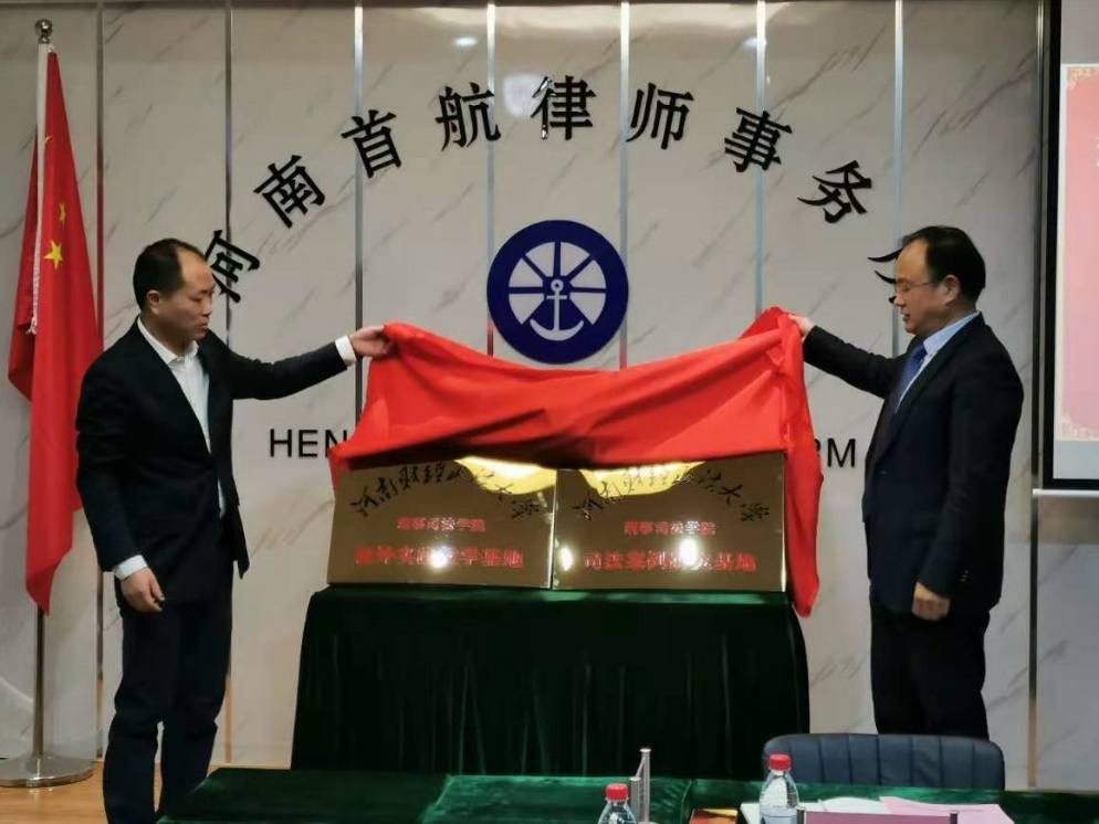 最后,郑州市律协副会长、河南首航律师事务所党支部书记田宏仓和beat365程政举院长共同为“司法案例研究基地”和“校外教学实践基地”揭牌。
