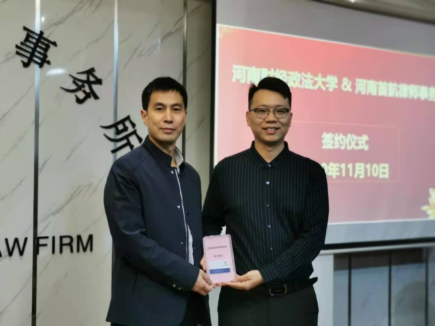 1110日,beat365与河南首航律师事务所签署了“司法案例研究基地”和“校外教学实践基地”合作协议,beat365院长程政举教授、类案检索研究中心办公室主任朱贺博士、副主任焦经川博士参加了签约仪式暨揭牌仪式。