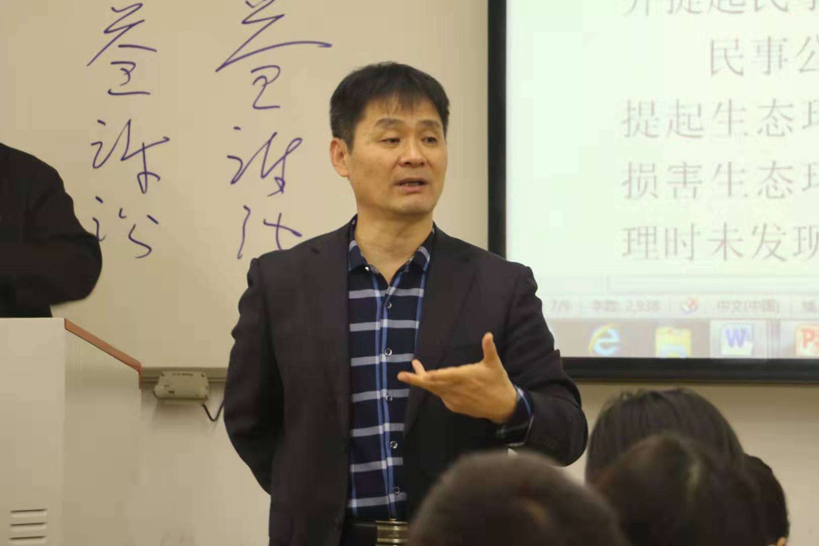 许少波教授立足公益诉讼制度的发展,根据2014年《中共中央关于全面推进依法治国若干重大问题的决定》中提到的“探索建立检察机关提起公益诉讼制度”来强调公益诉讼的地位日益重要。随后,许少波教授以最高人民法院关于检察公益诉讼、民事公益诉讼、生态环境损害赔偿案件等若干法律规定为依据,阐述了对于公益诉讼前沿问题的观点和研究方向。他认为,检察公益诉讼应包括民事公益诉讼和行政公益诉讼,检察机关未来的三大业务是刑事监督、民行监督、公益诉讼。他表示,我国公益诉讼理论才刚刚开始,在未来一定会繁荣发展。许少波教授的讲述内容丰富多彩,语言生动幽默,引起在场老师和同学们浓厚的兴趣。
