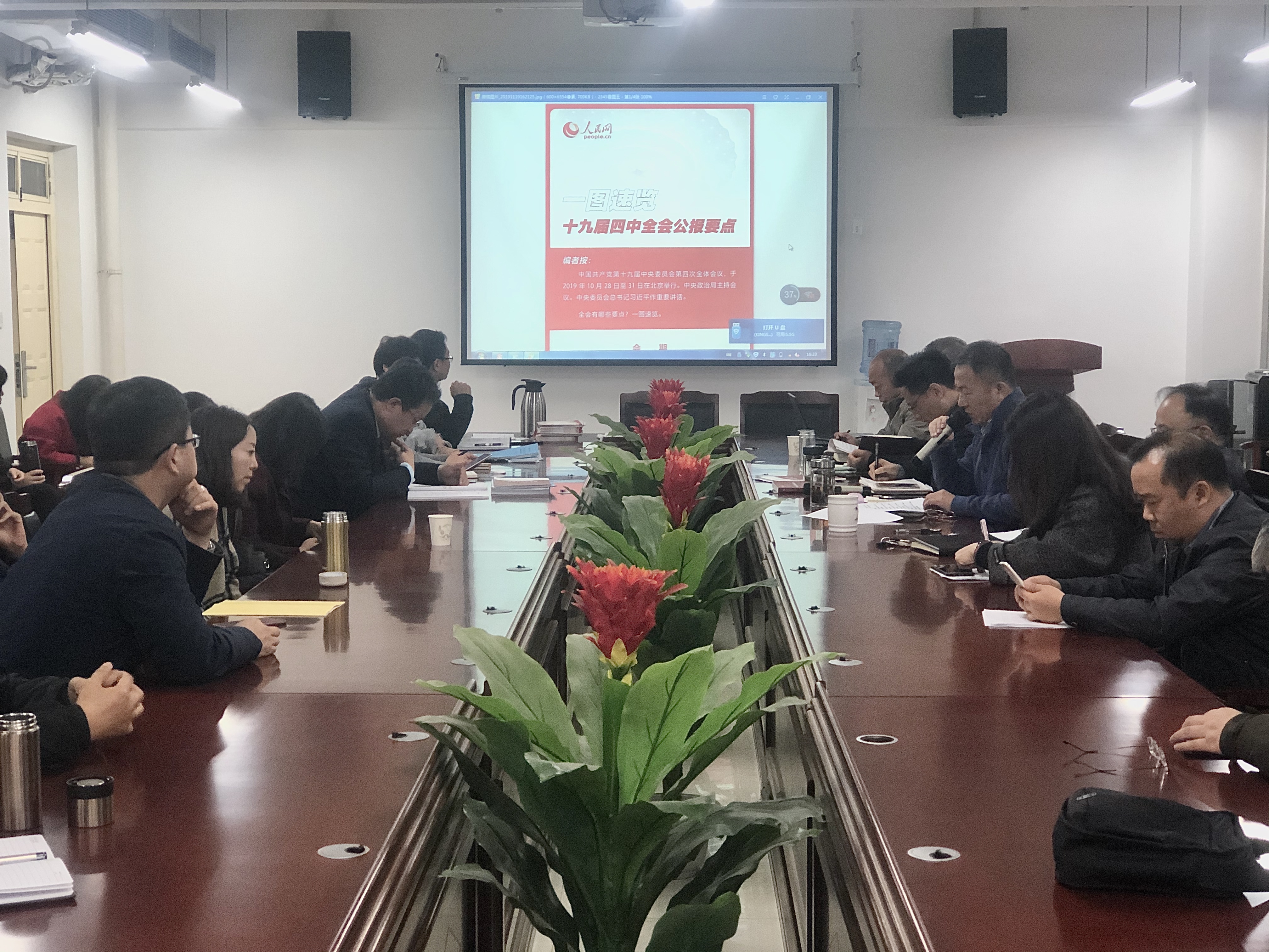 2019年11月19日,院党委认真组织学习、宣传贯彻党的十九届四中全会精神。院党委书记翟艳胜主持会议,学院全体教职员工参加会议。