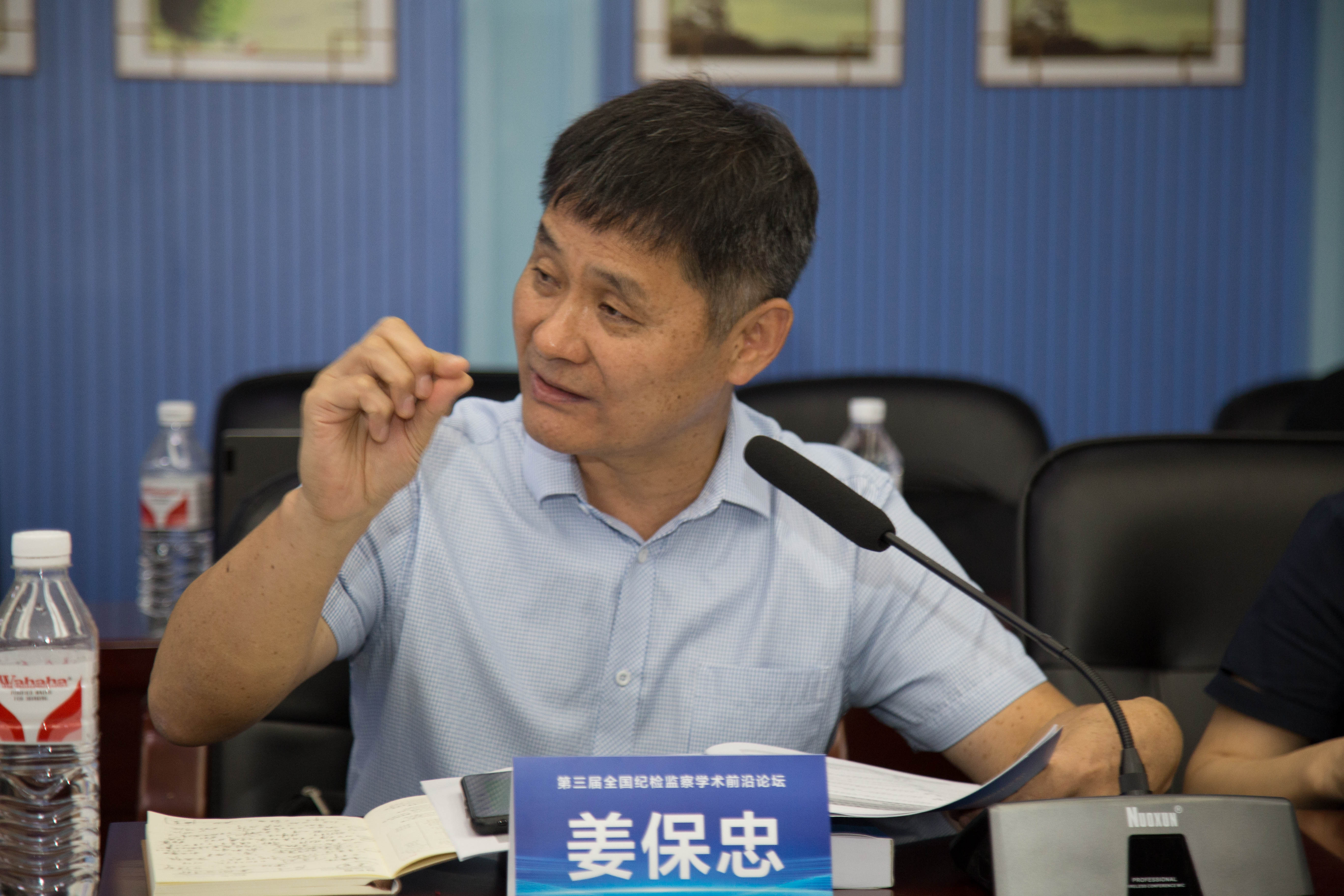 本届论坛的主题是“纪监融合与衔接”。论坛下设两个分论坛,分别是“纪检监察学科建设与纪监融合贯通”、“纪行协调与监检衔接”。姜保忠院长参加了第一分论坛的研讨并作主题发言。姜保忠在《以党的自我革命为引领,加快推进纪检监察学科建设》发言中提出,新的历史条件下,纪检监察学科承载着贯彻落实习近平新时代中国特色社会主义思想,深入推进全面从严治党、推动国家监督体系和监督能力现代化的历史使命。纪检监察学科体现中国特色、中国气派、中国风格,应以党的自我革命为引领,加快推进纪检监察学科建设。学科建设既要总结权力监督和制约的一般规律,也要归纳中国纪检监察发展的特殊规律;既要借鉴西方监督学等成熟学说,也要汲取本国长期积累的经验和优势;既要使纪检监察学科服务于中国式现代化建设需要,也要开拓创新,为反腐败斗争这一世界性难题贡献中国智慧和中国方案。