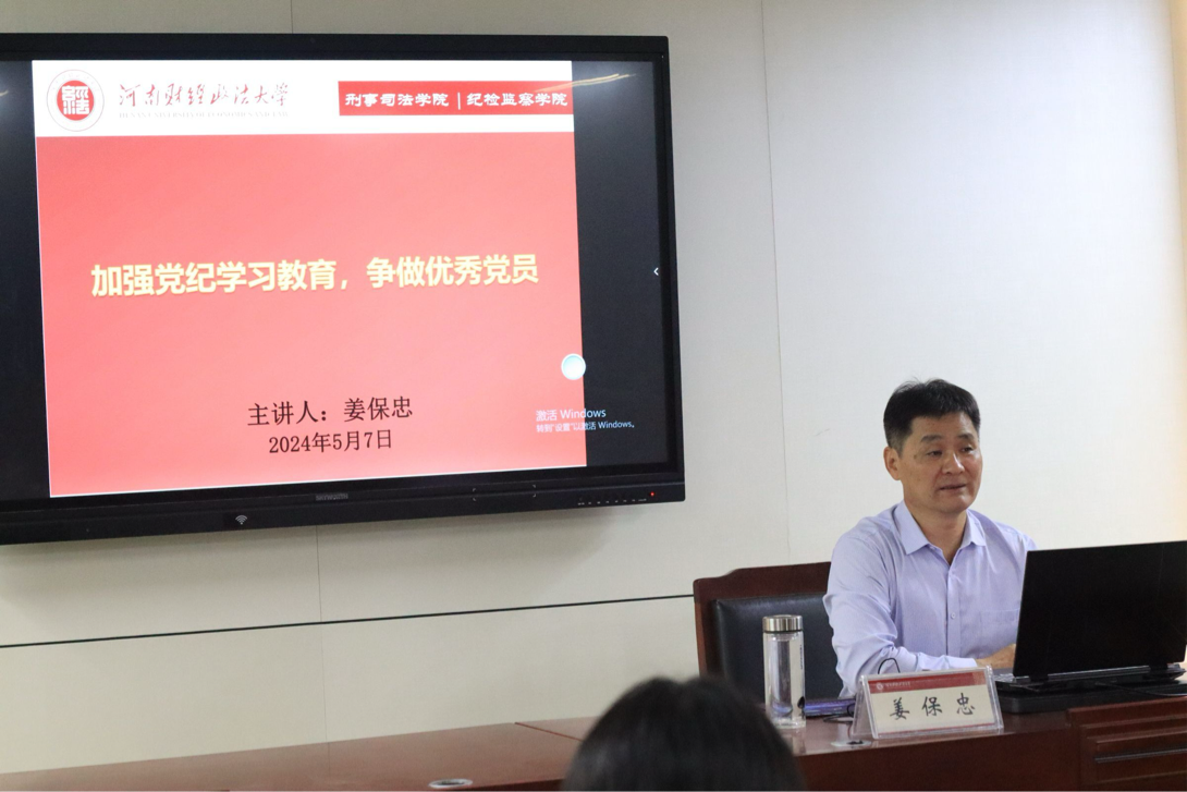 为进一步提高发展对象党性修养,落实党课学习教育工作,beat365于5月7日在教学科研楼504教室召开“加强党纪学习教育,争做优秀党员”主题党会。本次会议由院长姜保忠主讲,beat365全体党员发展对象参加。
