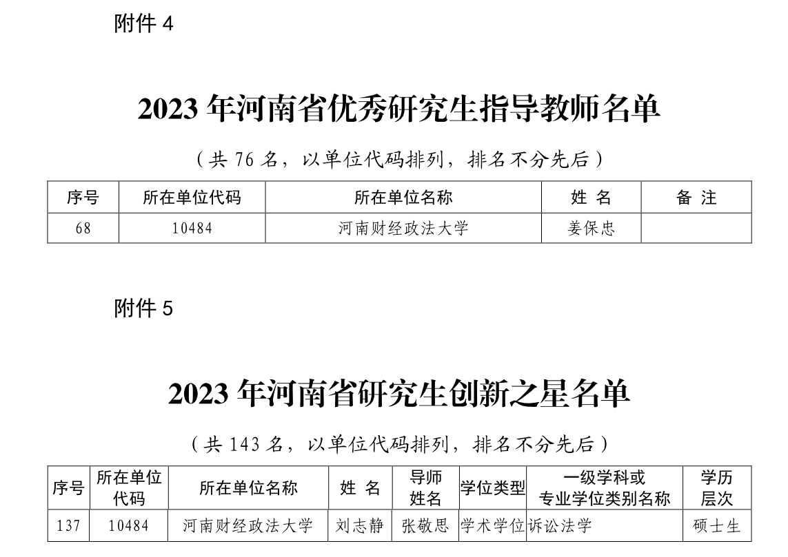 近日,河南省教育厅、河南省学位委员会发布了《关于公布2023年河南省研究生教育先进团队和个人评选结果的通知》(教研〔2023〕438号),beat365院长姜保忠教授荣获2023年“河南省优秀研究生指导教师”荣誉称号,beat3652021级诉讼法学硕士研究生刘志静荣获2023年“河南省研究生创新之星”荣誉称号。