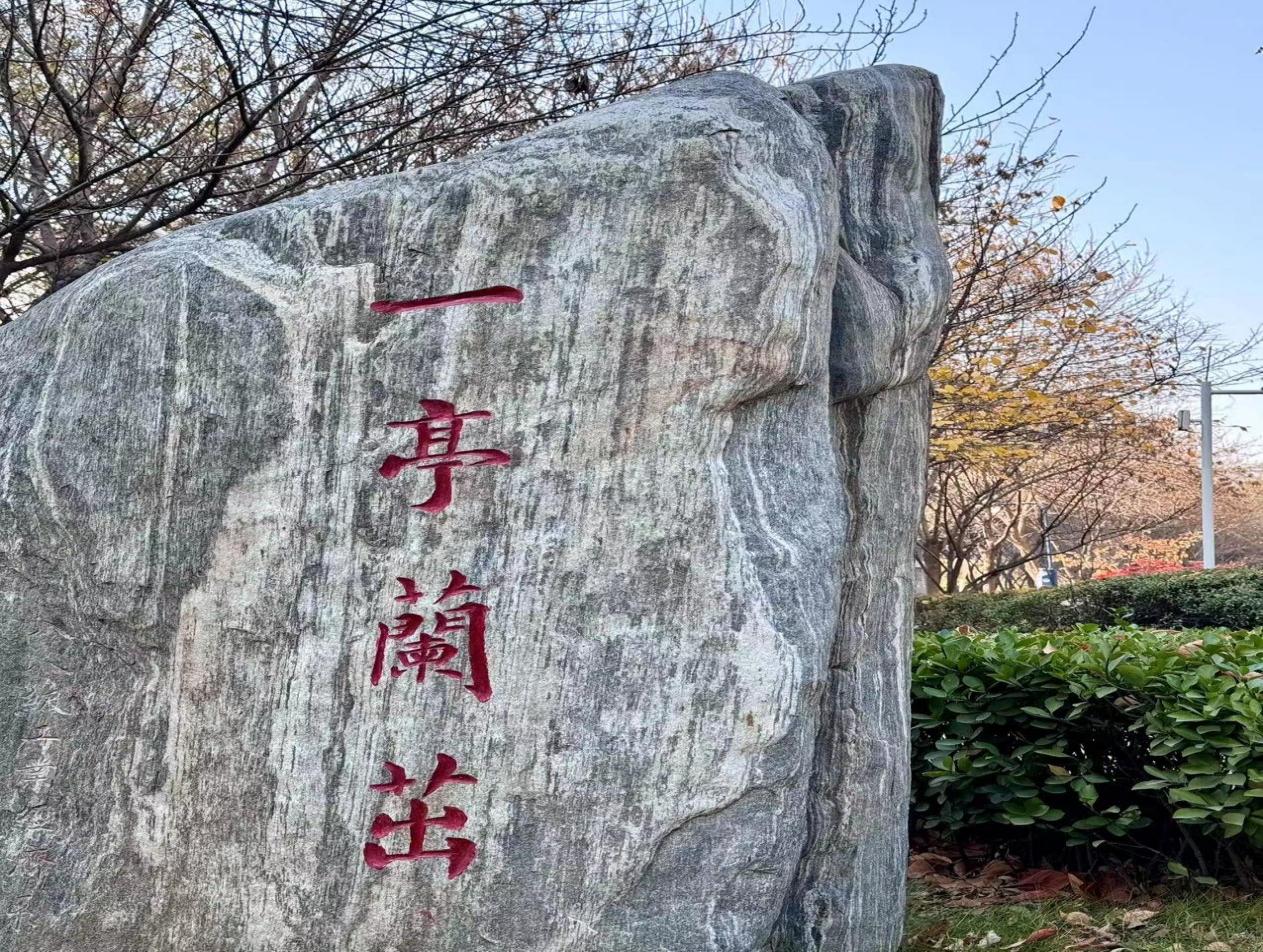“一亭蘭笜”文化石位于雅苑楼前。“一亭蘭笜”的意思是满亭都是香草。“蘭笜”是香草名,“笜”是古书上说的一种竹子,也指笜竹所制的箭。这个词出自宋代诗人黄公绍的《望江南》:“思晴好,日影漏些儿。茅屋三椽,自有春风作主。蔬笋是家珍,小摘处、渠非盗跖邻。疏篁外,粉墙围。行处飞絮,题时落红,不枉唤做吟魂。一片闲情,付与黄鹂消遣。飞到天涯,依旧是、琼林玉树身。”这喻示着财大宿舍温馨整洁的环境和学子朝夕相处、共同拼搏的牢固情谊。(图/杨宇航;文/郭仁杰)