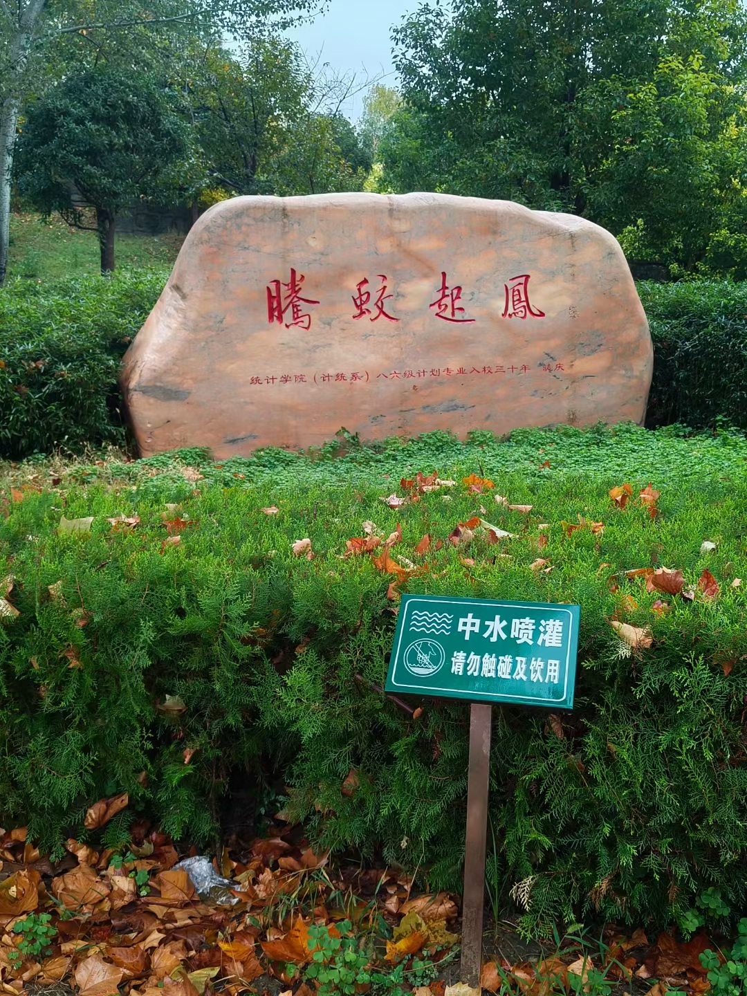 “腾蛟起凤”文化石是统计学院(计统系)八六级计划专业学生入校三十年后于2016年返校时敬赠。“腾蛟起凤”一词源于唐代王勃的《滕王阁序》:“腾蛟起凤,孟学士之词宗”,意为宛如蛟龙腾跃、凤凰起舞,喻示人才众多、各显其能。(图/文:白甲申)