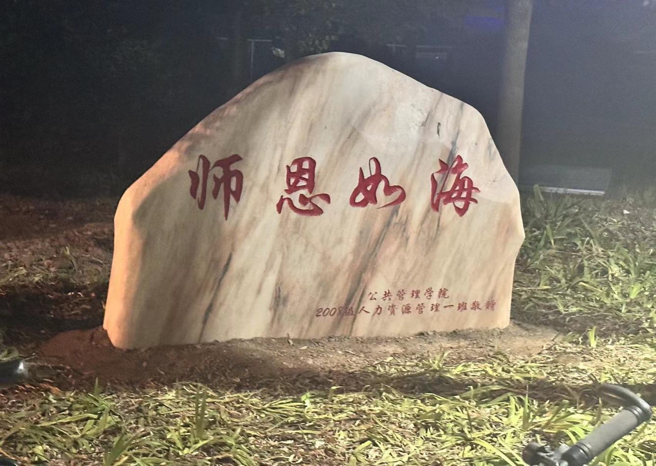 “师恩如海”文化石由2008级公共管理学院人力资源一班全体学生在财大75周年校庆时捐赠。“师恩如海”用来形容老师的恩情像海一样宽广、博大,表达了公共管理学院学子对老师真挚而深切的感激、感恩之情。(图/文:李静怡)