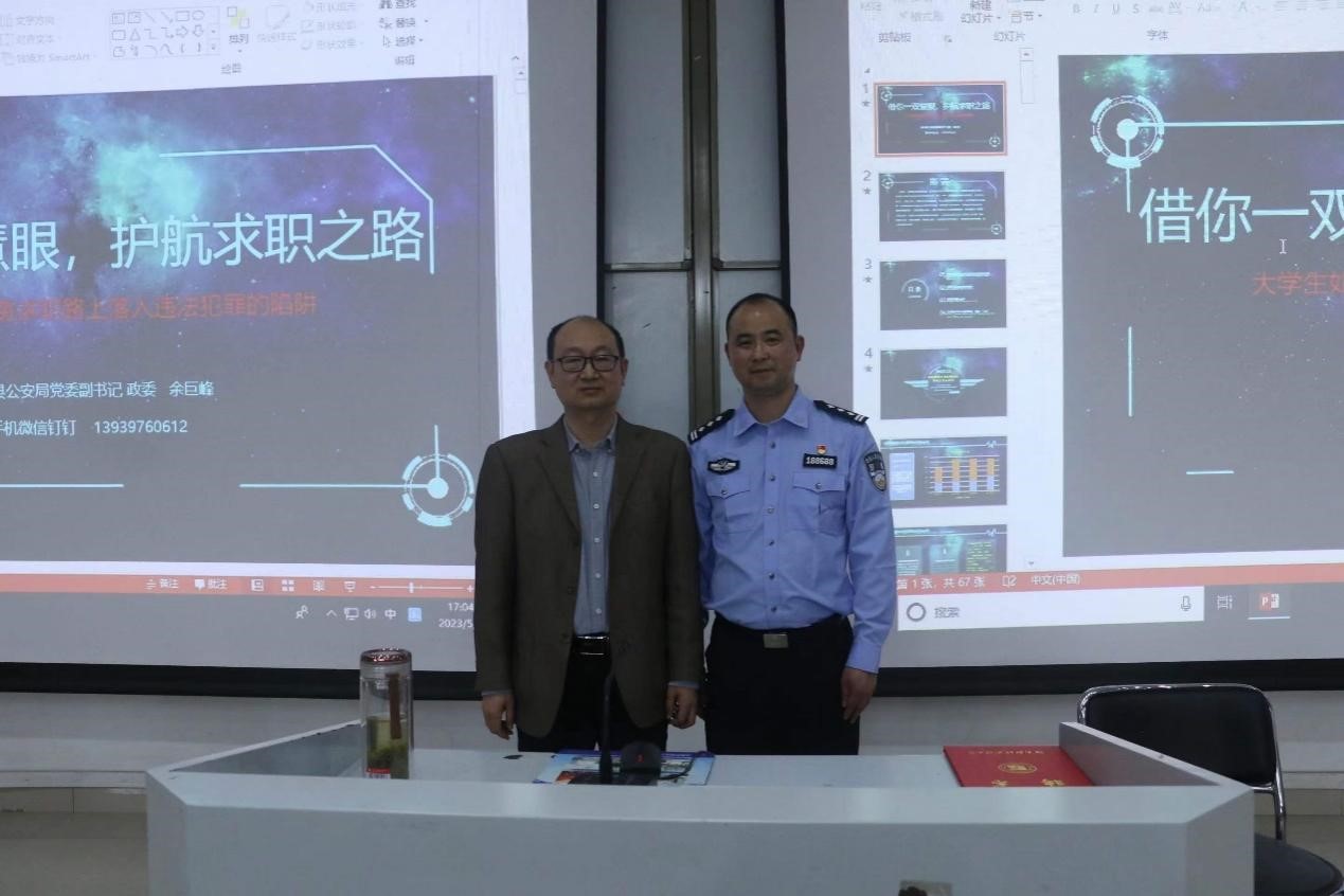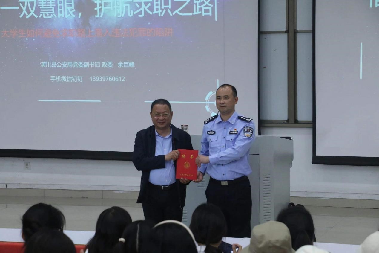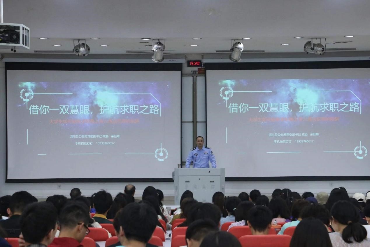 为给beat365学生提供有效的就业指导与帮助,避免其在求职路上落入违法犯罪陷阱,5月8日,beat365于第二教学楼220教室举办以“借你一双慧眼,护航求职之路”为主题的专题座谈会。本次座谈会由曾于beat365就读、现任潢川县公安局党委副书记、政委的余巨峰主讲,beat365党委书记王健、三大文化协同育人中心主任杜卫东、团委书记武仕祯及22级全体学生参加。