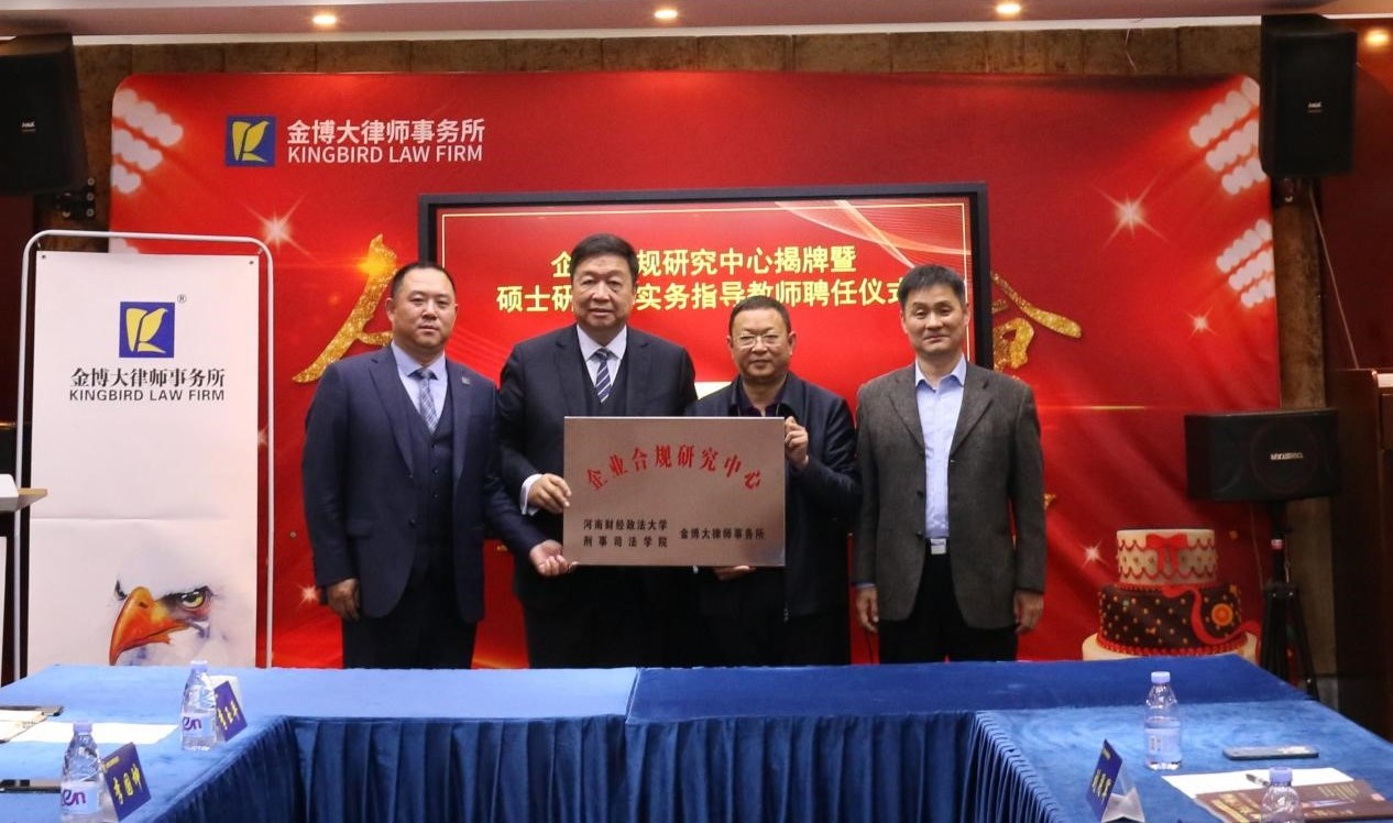座谈会开始前,首先举行了河南财经政法大学beat365亚洲体育在线官网与金博大律师事务所共建“企业合规研究中心”揭牌仪式。王健书记、姜保忠院长向孙保山、徐根海、臧广勇三位知名律师颁发了研究生校外实务指导教师证书。