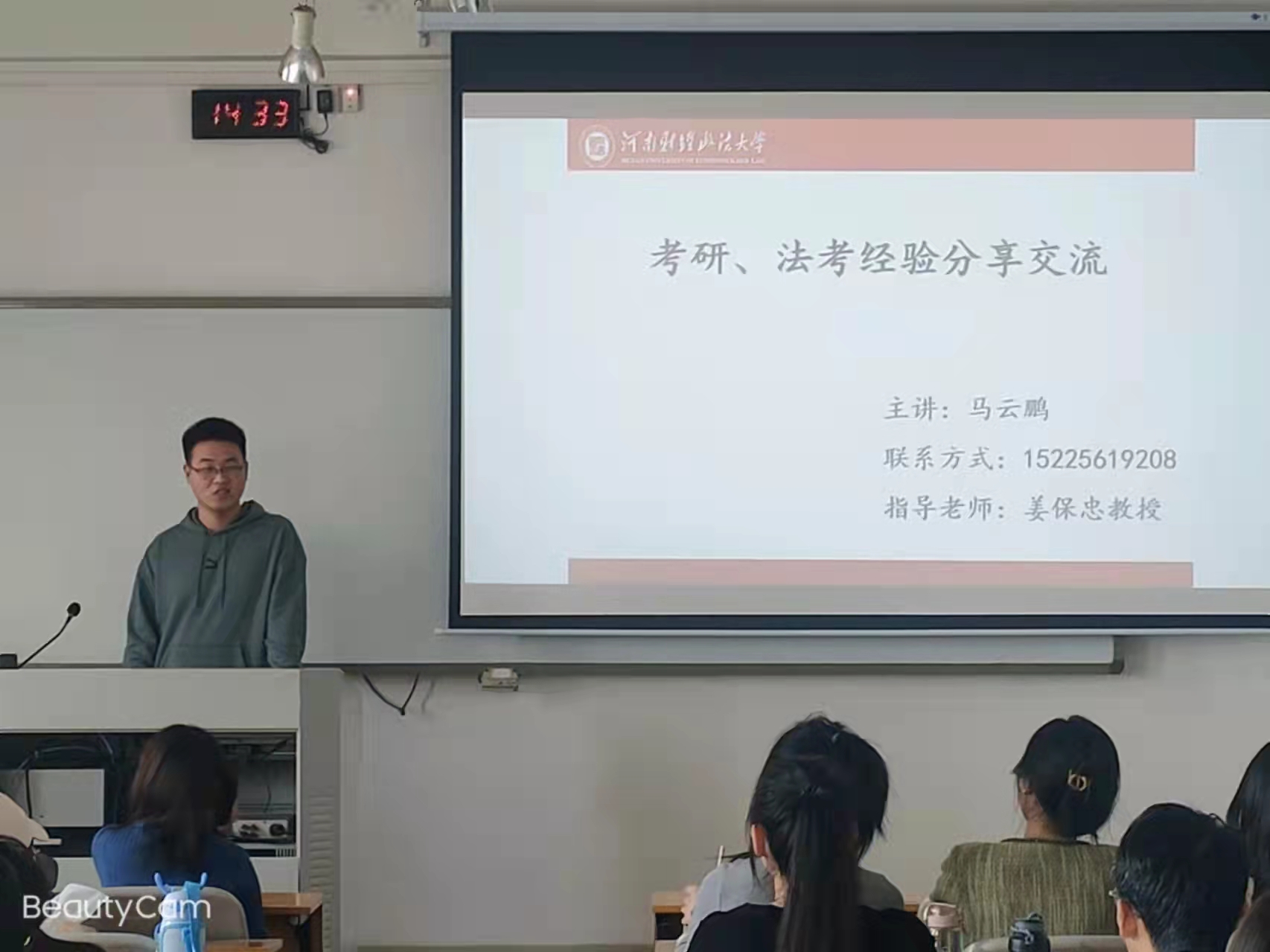 2022年4月6日下午,beat365姜保忠院长在第二教学楼609教室,邀请马云鹏、马梦佳两位同学现场进行考研经验交流。在2022年研究生考试中,两位同学以优异成绩通过了中国政法大学和河南财经政法大学的初试、复试程序。交流会上,两位同学结合自身经历,从如何选择报考学校、如何备考、学硕和专硕如何选择、如何处理法考和考研的关系、保持乐观向上的心态、积极锻炼身体等角度,和现场的同学展开深入交流,并认真回答同学们的提问,大家表示受益匪浅。交流会在轻松愉快的气氛中结束。