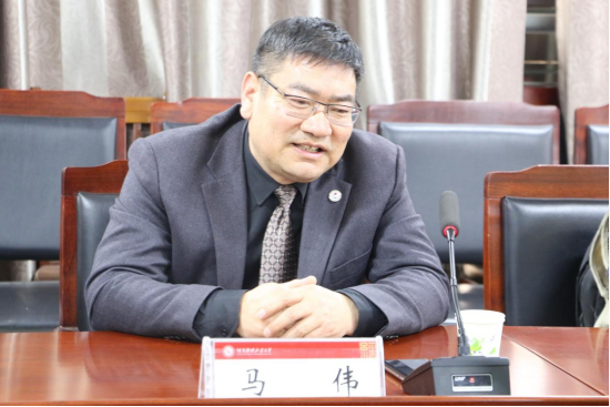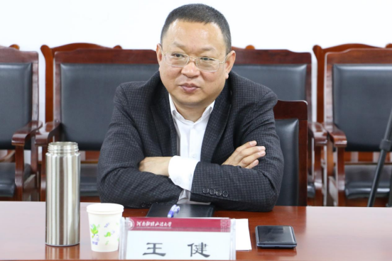 党委书记王健致词,对河南广播电视台《老马说法》栏目组、河南有道律师事务所各位同仁的到来表示欢迎,介绍了学校、学院的基本情况,介绍了法学教育实践教学中遇到的问题,表达了学院与河南电视台《老马说法》栏目及河南有道律师事务所院媒联合、院所联合,实施产教融合、联合育人的期盼。