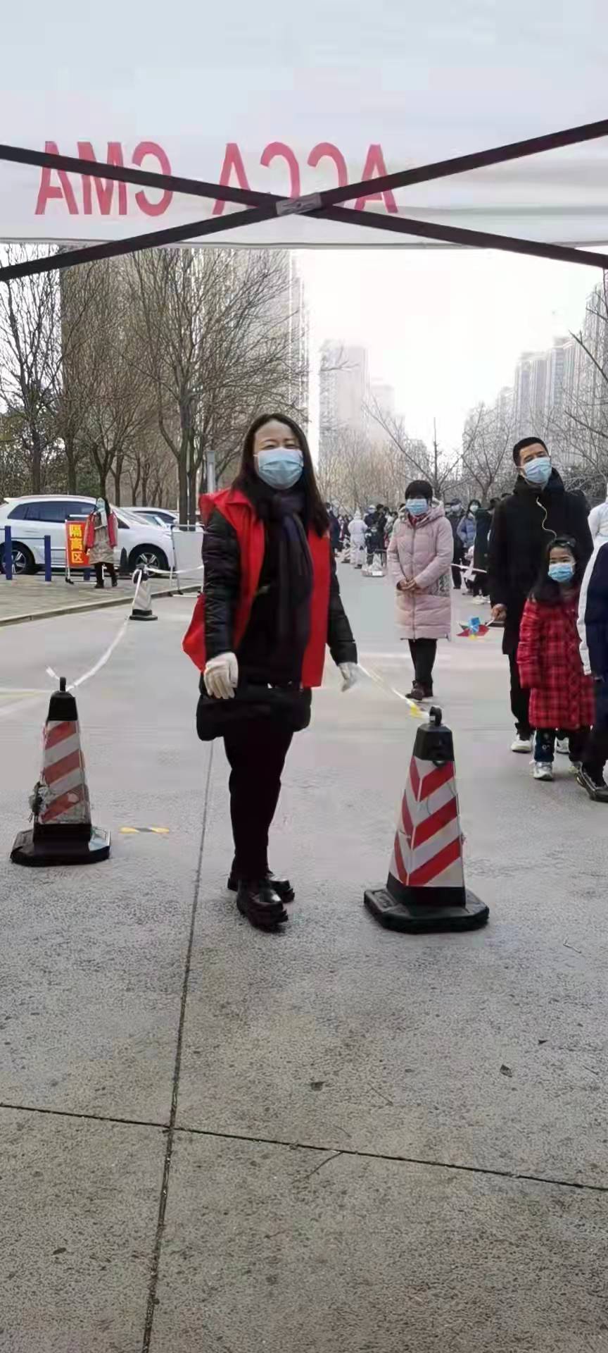 “请保持一米距离”、“请戴好口罩”、“请扫码检测”,这是beat36521级学生张月芳每天在检测点重复无数次的话语,正是这一句句的暖心提醒,让检测工作有条不紊地开展。就算出现大雾天气,就算检测工作要开展到凌晨,只要看到周围一抹抹与自己相同的“志愿红”也坚守在自己的位置上,她就不惧挑战。
