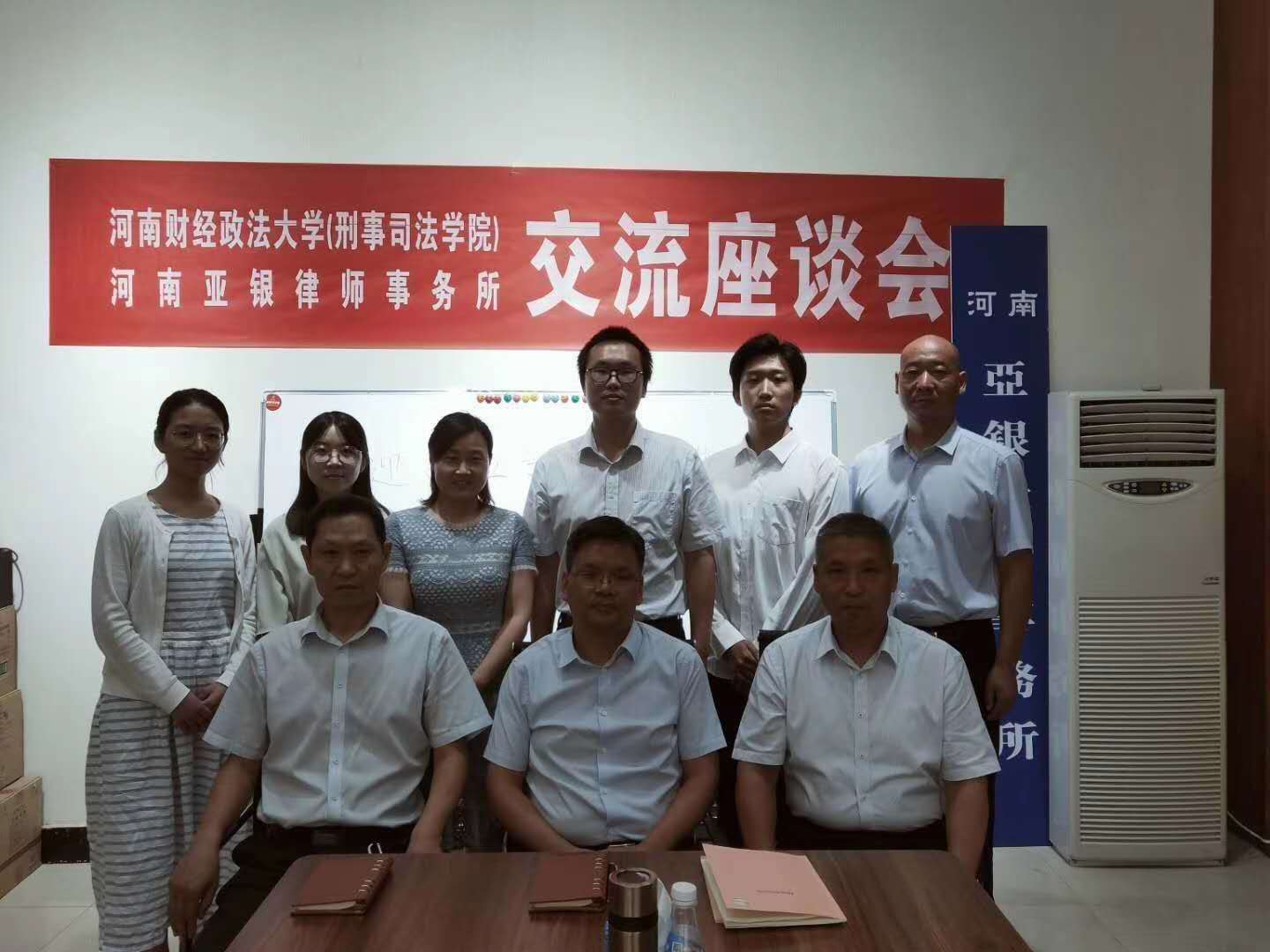 7月18日下午,学校招生办公室副主任郭书山、beat365副院长张二军赴河南亚银律师事务所,就法学本科生暑期实习指导及毕业实习事宜进行了专题座谈,会议由河南亚银律师事务所主任杨军锋主持。