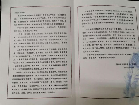 这封来自程政举院长的祝福信带给2020届毕业生满满的温暖与感动,让毕业生感受到了母校的关怀与柔情,给予即将步入社会的他们一种莫大的鼓励与支持。