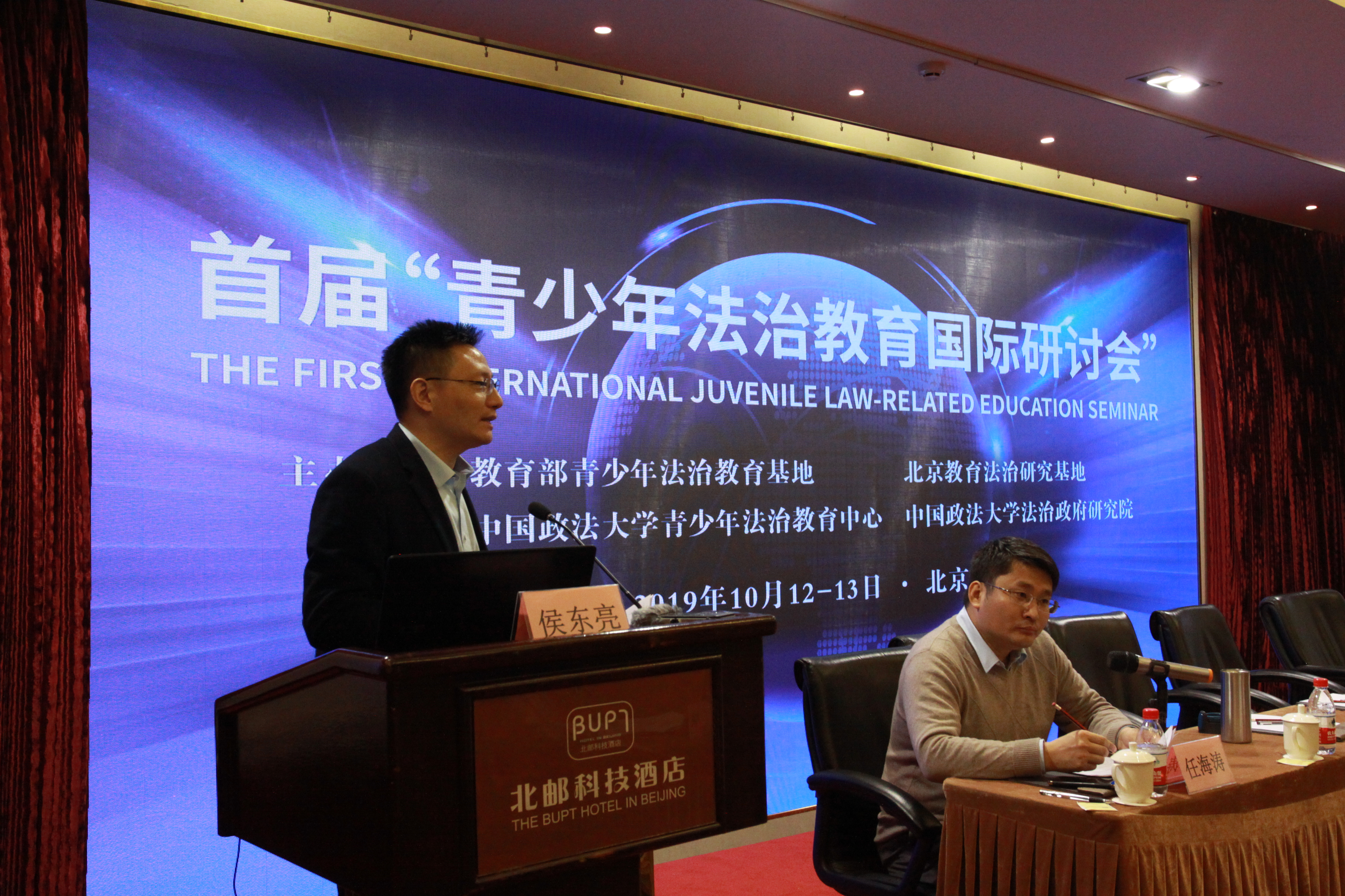 20191012日到13日,由教育部青少年法治教育基地、中国政法大学法治政府研究院等单位主办的首届青少年法治教育国际研讨会在北京成功举行。beat365侯东亮副教授应邀出席会议,并以《未检案件集中管辖问题研究》为题做了会议发言并与与会专家进行讨论,北京师范大学宋英辉教授、北京大学湛中乐教授做了精彩点评,引发参会人员的积极讨论。