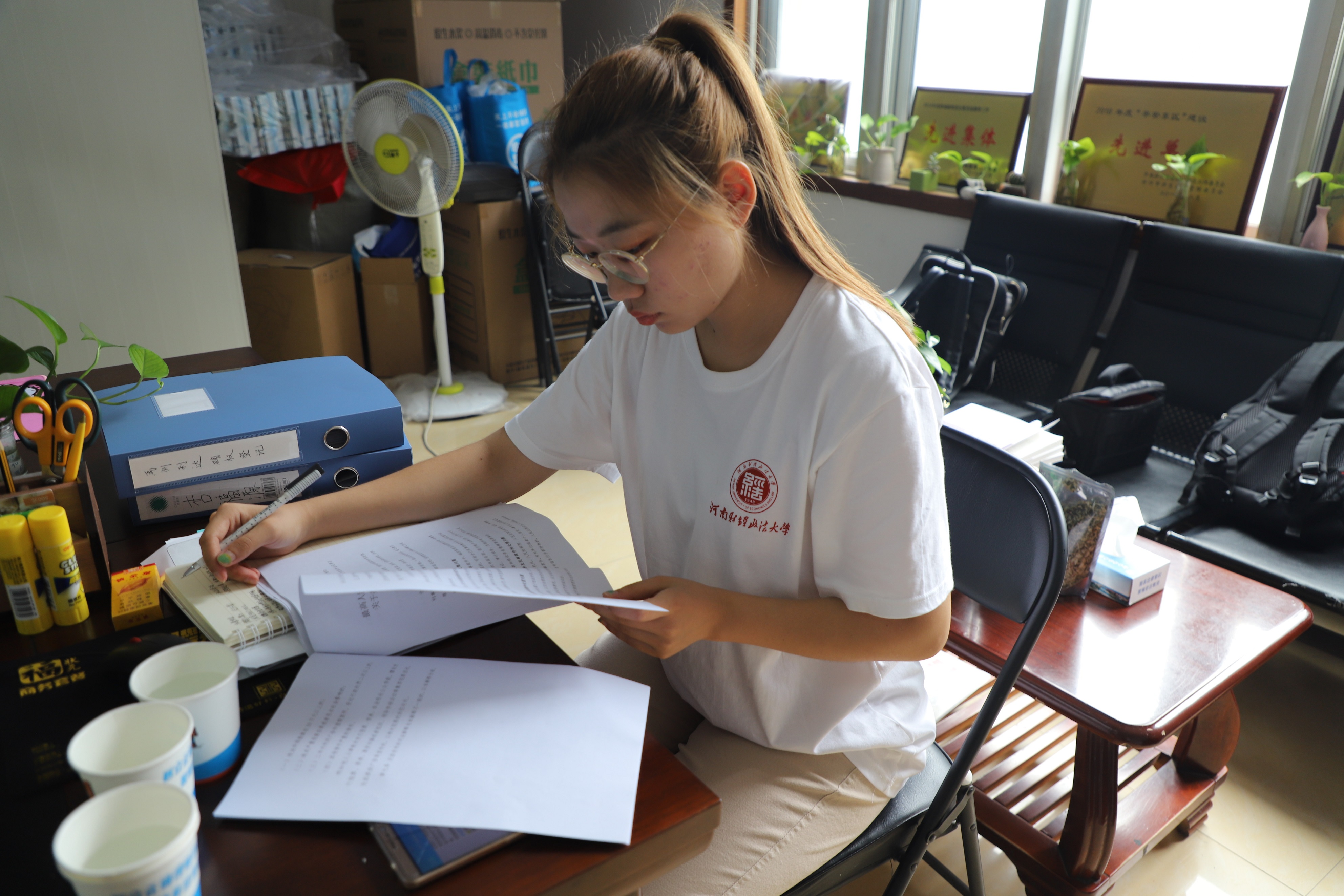 办事处工作人员欢迎社会实践小分队的到来。商都路办事处的工作人员带领两名队员,对位于郑东绿地中心北塔的锦地传媒有限公司进行营业资格审查,对企业法人资格进行核实,对公司租赁信息以及员工服务方式进行确认。如意湖办事处的工作人员指导队员查阅卷宗,队员们不仅直观了解到非法集资涉众性特点,而且对处理程序也有了一定的认识。在祭城办事处,队员遵循工作安排,协助其他部门维持交通秩序、登记上访群众信息。此外,实践队员在办事处工作人员的带领下到社区巡查,查看是否存在违法违规宣传现象,还对相关公司是否存在违法违规活动进行了检查。