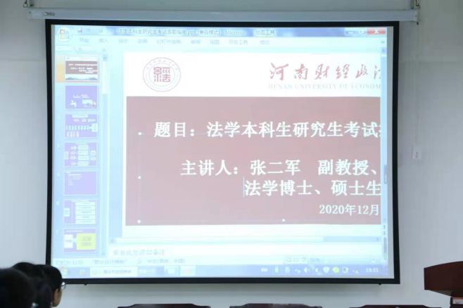 讲座伊始,张二军副教授询问了在座学生的报考意向,紧接着带领学生串讲了刑法总论和分论的知识点,并对当下的法律热点问题进行分析讲解。随后,他结合具体考点对论述、简答、法条评析等题型的答题思路及模式进行讲解,帮助学生掌握答题方法,有效地提高分数。他强调在备考阶段要有侧重点地进行学习,注意学习方法,学会总结归纳,提高学习效率。会议最后,张二军副教授将往届考研成功的学子经历分享给在座学生,鼓励大家树立信心,也祝愿大家都能考取理想的学校。