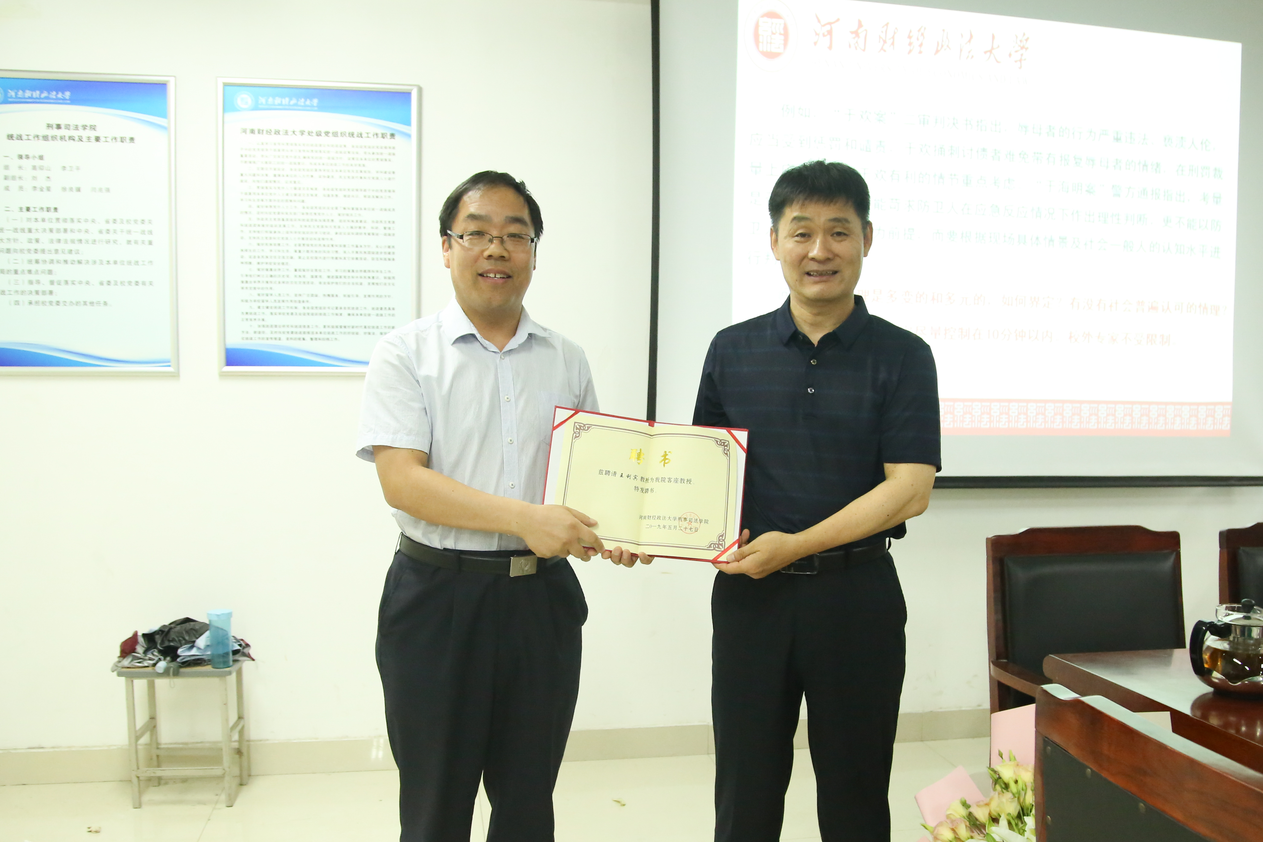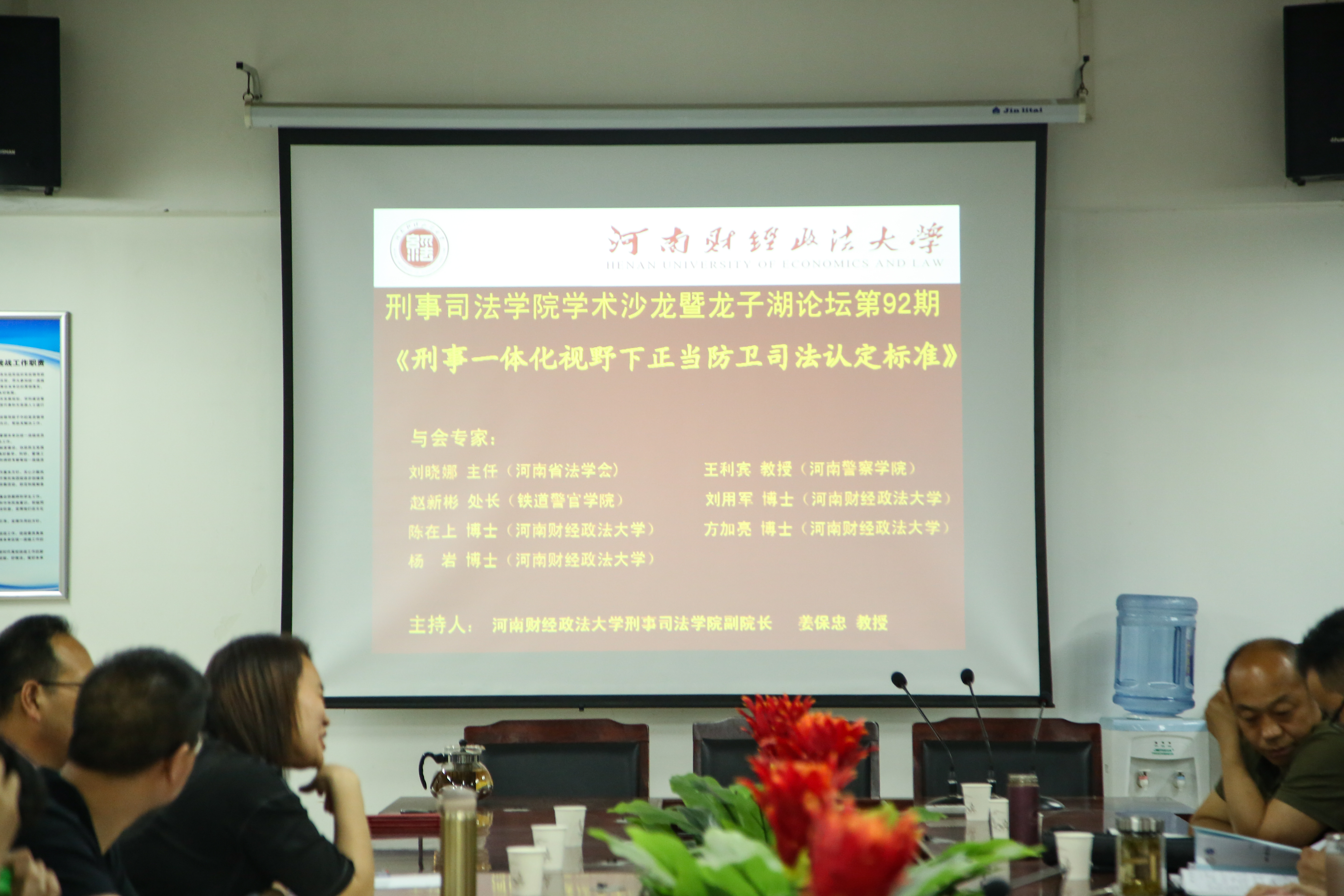 2019年5月27日晚7时,期待已久的法学沙龙暨第九十二期龙子湖法学论坛在教科楼A座504会议室圆满举行。本次法学沙龙围绕《形事一体化视野下正当防卫司法认定问题》这一题目展开,由beat365副院长姜保忠教授主持,河南省法学会刘晓娜主任、河南警察学院王利宾教授和河南铁道警官学院赵新彬处长作为嘉宾出席本次法龙,参与本次法龙的还有beat365刘用军博士、陈在上博士、侯东亮博士、方加亮博士、杨岩博士和beat365刑法学、诉讼法学研究生以及部分本科生。
