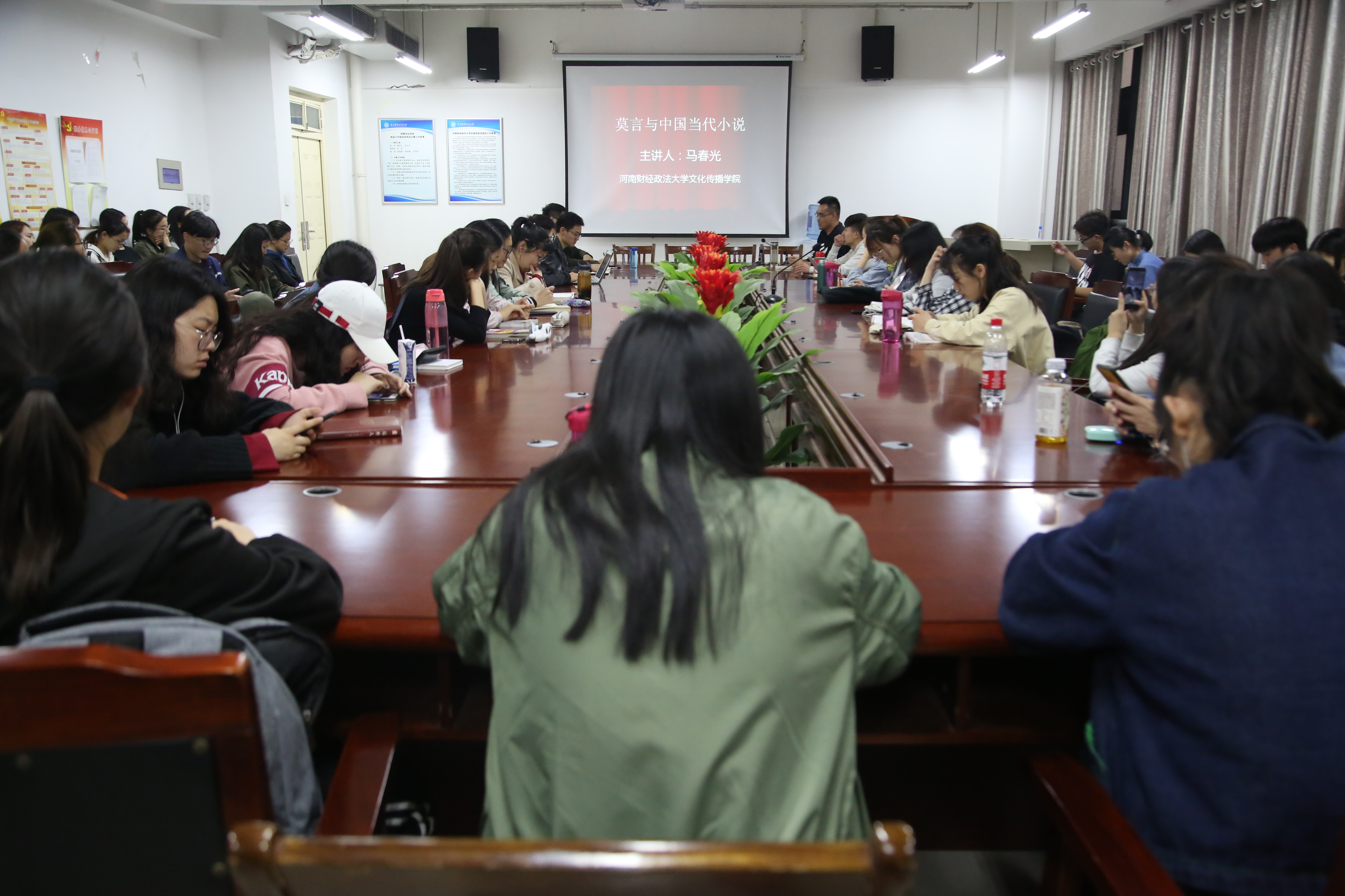 2019年4月29日晚7时,beat365亚洲体育在线官网第八十八期龙子湖法学论坛在教科A座504会议室隆重举行。本期论坛由河南财经政法大学文化传播学院讲师、山东大学文学博士马春光老师主讲,其主讲的题目为《莫言与中国当代小说》。beat365诉讼法学与刑法学研究生以及部分本科生参加了本次论坛。