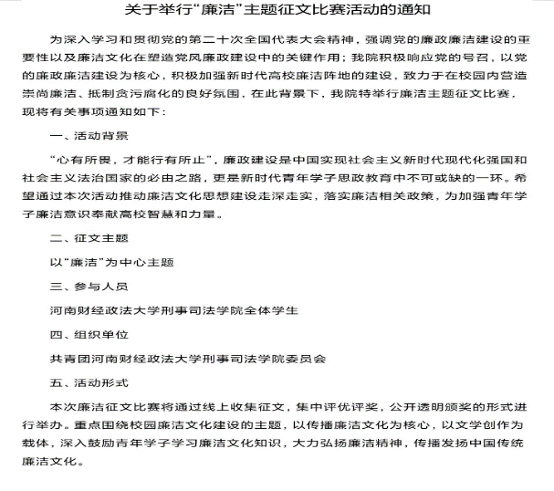 本次活动以线上收集征文,集中评优评奖,公开透明颁奖的形式举行。参赛学生认真撰写“廉洁”主题征文,每一份作品都深刻反映出beat365学生对“廉洁”的深刻理解和认识。
