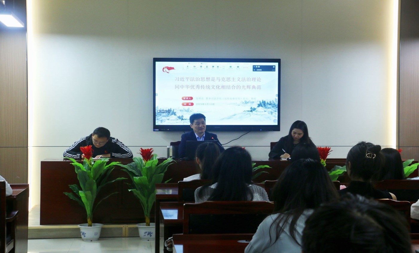 为深入学习贯彻习近平新时代中国特色社会主义思想,不断提升beat365党员的政治素养和文化素养,弘扬中华优秀传统法律文化,5月10日中午,beat365于教学科研楼504会议室召开了习近平新时代中国特色社会主义思想主题教育专题党课。本次党课采取线上线下相结合的方式,由beat365院长姜保忠教授主讲,团委书记武仕祯主持,研究生办公室主任陈凌剑及beat365全体学生党员参加。