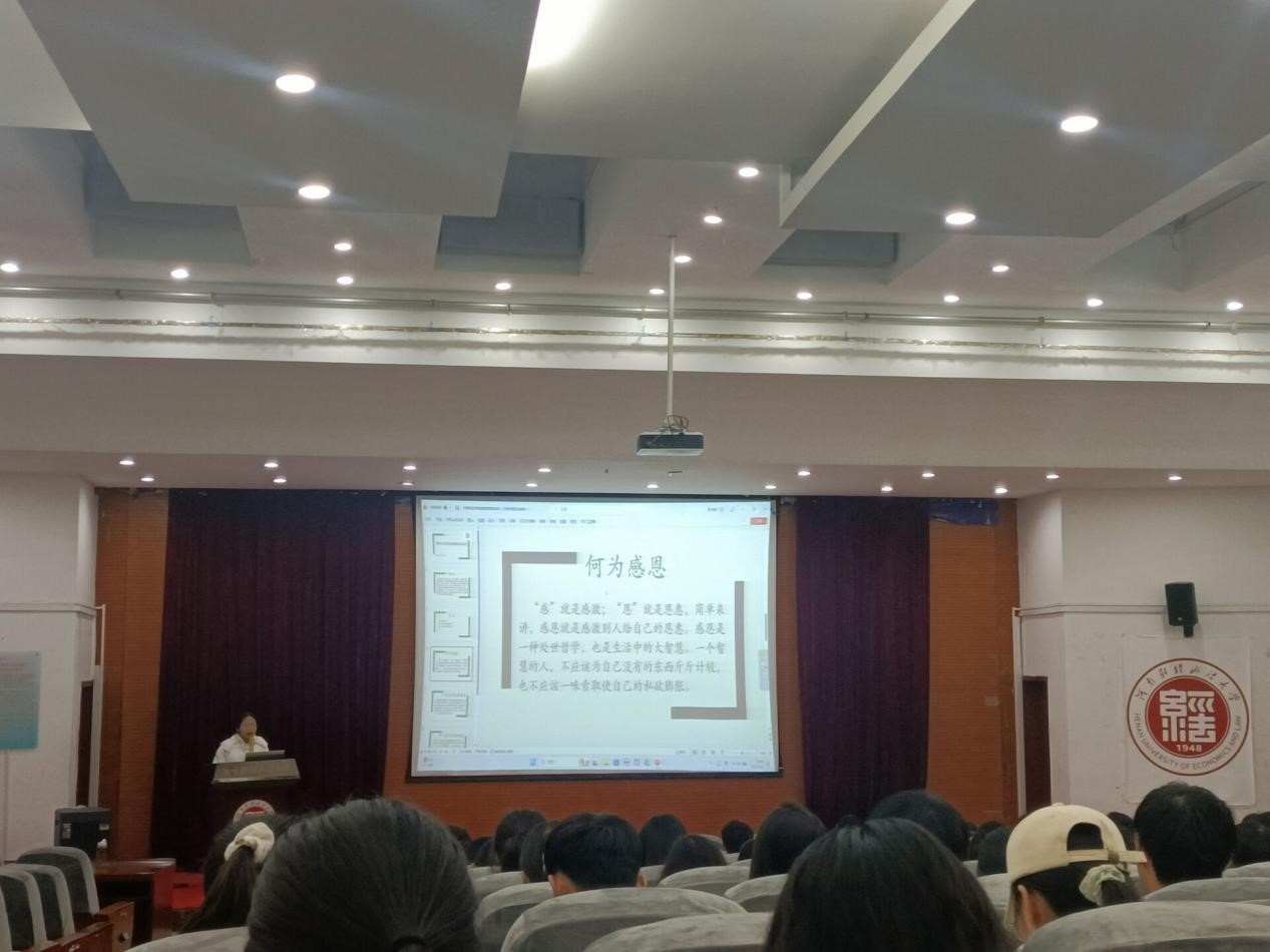 为加强学院学生感恩教育,提高学生道德修养,近日,beat365于第一教学楼220教室开展以“心怀感恩,砥砺前行”为主题的感恩教育活动。本次会议由beat365资助部组织开展,beat365全体家庭经济困难学生参与其中。