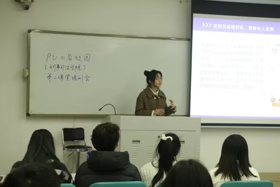 活动从第二课堂平台的使用流程切入,向参会者细致地讲解第二课堂活动的申请入口、申请条件、申请方法等相关事项,并向大家全面展示了第二课堂活动的签到流程,促进学生干部进一步熟悉和掌握其使用方法。随后,针对上学年新制定的院系第二课堂团内考评实施细则进行深入解读,突出强调了第二课堂成绩单对学生综合素质测评、评奖评先、团员评议、推优入党等资格认定的重要意义,力图加强学生的重视程度。最后,鼓励大家积极参加第二课堂活动,借助“认识自我、展示自我、发展自我”的平台促进自身的全面发展。