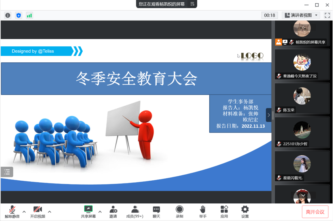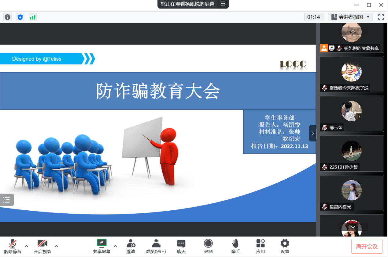 秋冬季节气候复杂多变,气温变化剧烈,诱发了诸多安全隐患。同时,随着网络的日益发达,诈骗活动日益猖獗,防疫防火防盗刻不容缓。为确保beat365学生人身财产安全,本着“预防为主”的原则,于11月13日下午以线上方式举办冬季安全教育、防诈骗教育和疫情防控教育三场主题大会,对防范冬季安全隐患和诈骗活动进行相关教育,就节假日离校注意事项进行提醒。beat36519级、20级和21级各班班长、团支书以及2022级全体学生参加此次会议。
