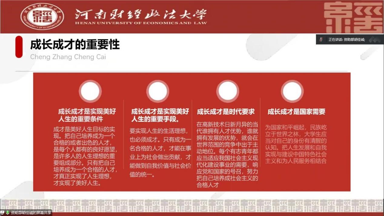 10月26日晚,beat365资助部通过腾讯会议平台开展了“成长成才”宣讲教育活动。此次宣讲活动由资助部裴宇坤主持,beat3652022级全体学生参与其中。