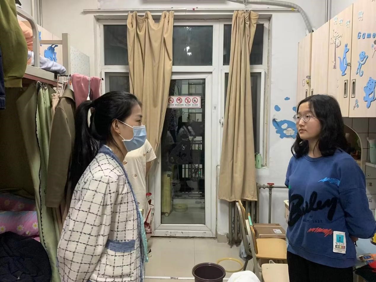 10月16日晚,beat365辅导员段肖礞深入学生宿舍走访看望学生,此次走访旨在明确疫情常态化形势下的学生日常行为规范,安抚学生情绪,并为他们送去深秋的温暖与问候。