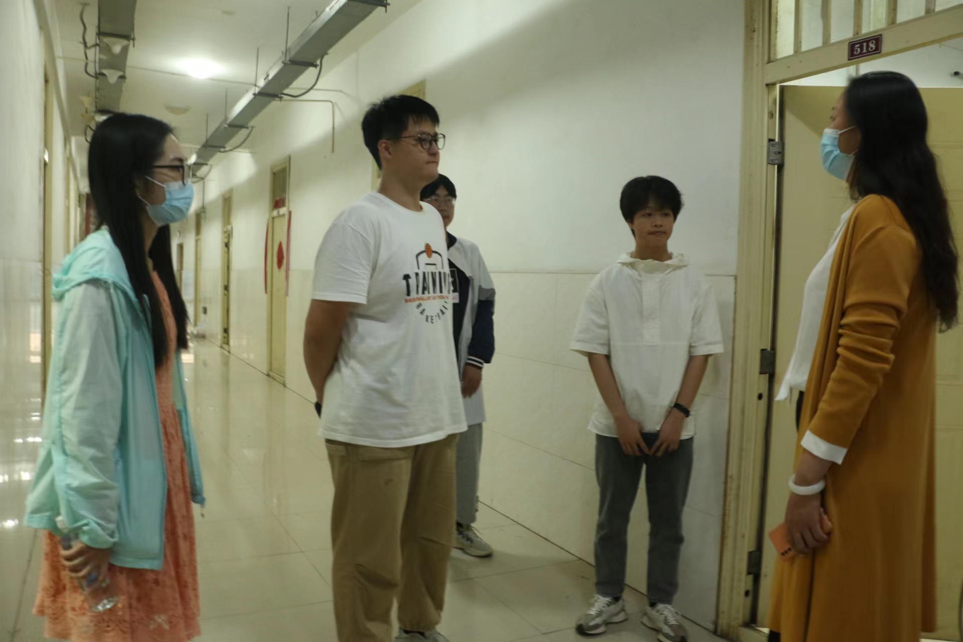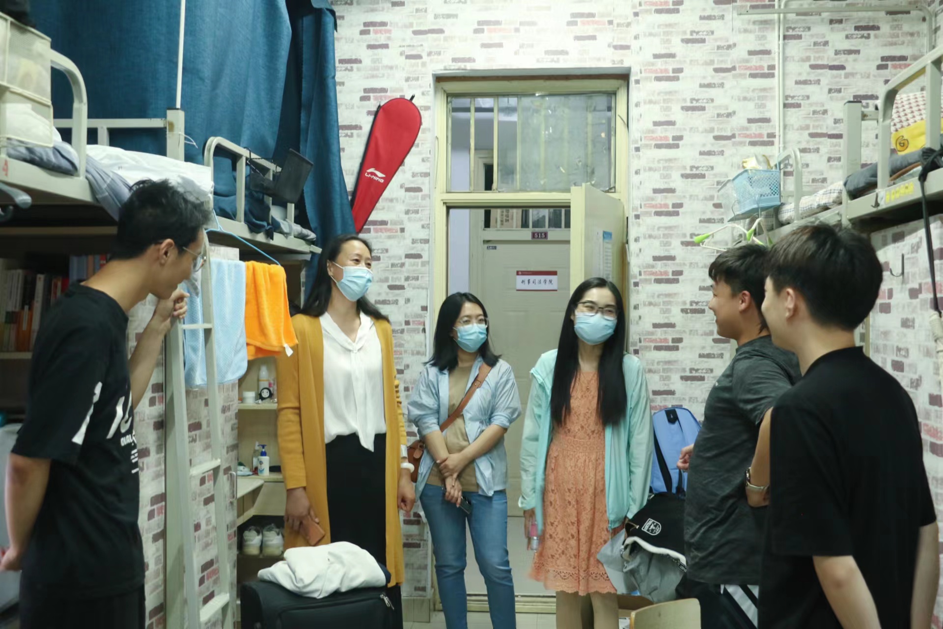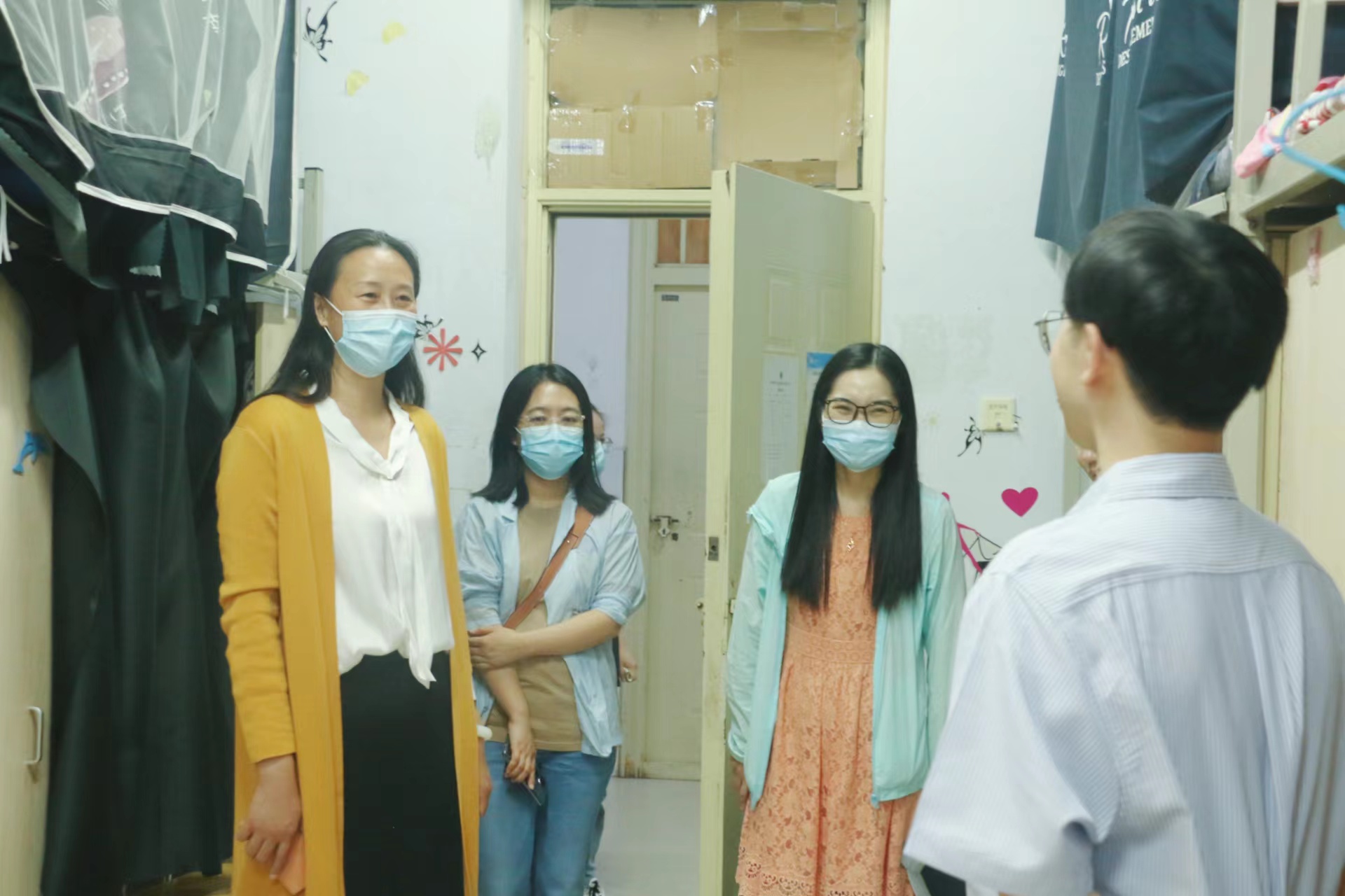 为深入了解疫情防控期间beat365学生的学习生活情况,5月5日晚,beat365党委副书记陈俊敏、团委书记武仕祯、正科级辅导员介晓宇一行代表学院深入学生宿舍,为同学们送来学院的关心与问候。