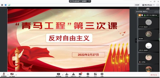 为进一步提升青年团干的思想理论水平,坚定理想信念,帮助大学生树立正确世界观、人生观和价值观,2月27日晚,beat365借助线上平台举行第十二期“青马工程”第三次培训活动。本次活动以“反对自由主义”为主题,beat365团校学生干部蒋浩宇主讲,20级与21级青马工程学员参加本次培训。