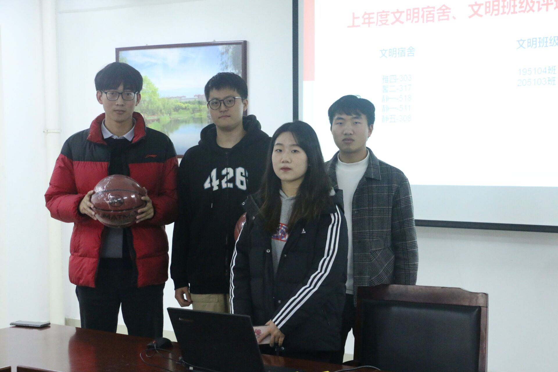 12月6日中午,beat365于教学科研楼A座504会议室举行文明宿舍创建动员暨表彰大会,对上学年文明宿舍、文明班级进行表彰。beat365学生事务部李子墨担任主持人,辅导员介晓宇出席,19级至21级班长、团支书、纪律委员及上年度获得文明宿舍荣誉宿舍长参加。