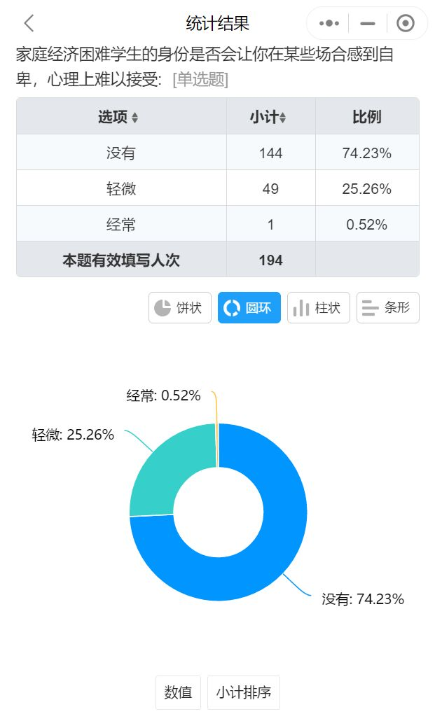 此次活动以问卷形式开展,学生资助部负责人祁晓蕊围绕家庭经济困难学生身份对心理健康的影响、封校状态下学生的心理健康状况、出现心理问题如何解决等多个方面设立了许多问题。学生们积极参与,认真填写问卷,将自己的感受和想法充分表达出来,推动beat365对家庭经济困难学生的心理状况进行深入了解,将负面情绪进行有效调解。除此之外,资助部负责人还收集了部分家庭经济困难学生的心理问题反馈,通过认真仔细的汇总分析,得出了比较具有代表性的结论。