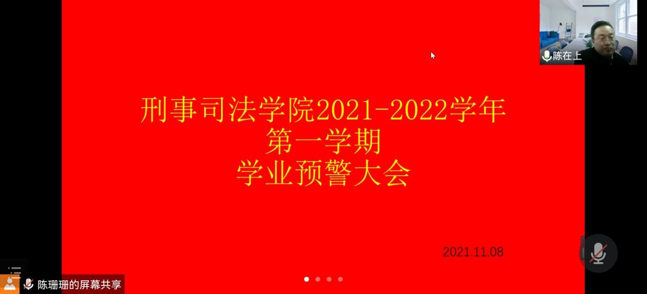 11月8日晚,我院召开了2021至2022学年第一学期学业预警大会,本次大会采用线上会议的方式举行,beat365副院长陈在上及部分学生参加了会议。