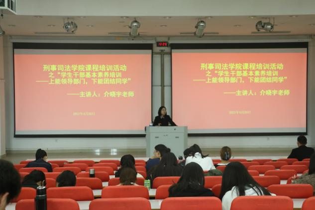课程培训伊始,介晓宇以“同学们选择成为学生干部的原因”为切入点,阐明自身看法,并引导与会学生思考成为学生干部的意义。接着,介晓宇分别从持之以恒的毅力、强烈的责任感、认真细心的态度和文明礼仪的风范四个方面对学生干部提出具体要求。同时介晓宇强调学生干部的组织能力和表达能力的重要性。最后在座学生共同观看并学习了习近平总书记在清华大学校庆上的讲话。